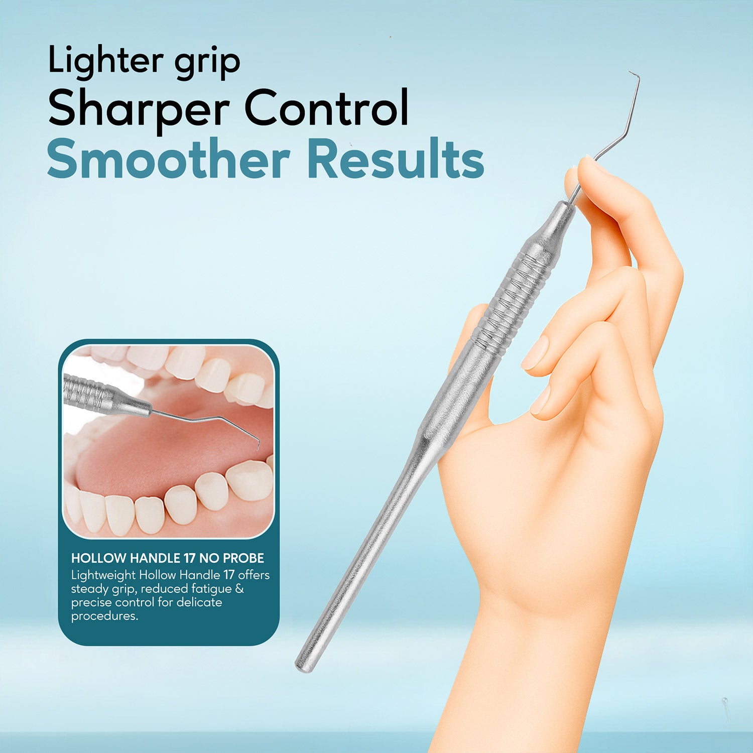 A Hollow Handle No. 23 Probe is a lightweight, hollow-handled dental or surgical probe designed for examining, exploring, or detecting irregularities in teeth, gums, or tissue. The No. 23 refers to the specific shape or size of the probe tip, which is usually fine and precise for detailed inspection.
